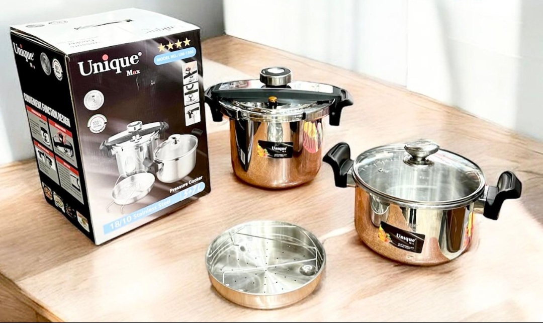 Upgrade your kitchen efficiency today. Purchase the Unique Stainless Steel Pressure Cooker Set 7L and 5L from Jumex for premium quality and exceptional cooking performance.